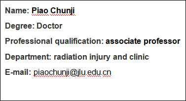 lAssociate professor, Jilin University, DepartmentofRadiation Injury and Clinic, 2008-present