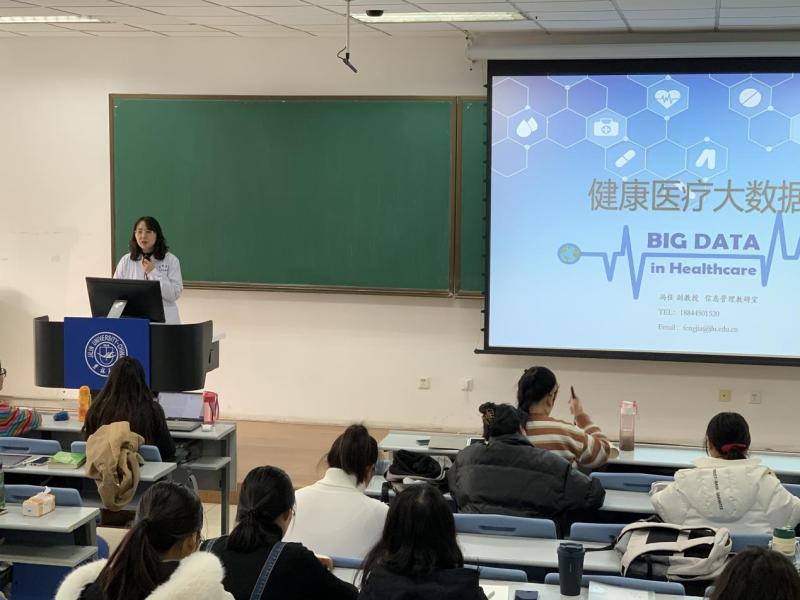 At the beginning of the new semester, in order to further implement the fundamental task of establishing morality and cultivating people, promote the construction of teaching style and style of study, steadily improve the quality of classroom teaching, and continuously improve the quality of undergraduate teaching, on the morning of February 28, Zhao Guoli, Secretary of the School of Public Health, Liu Yawen, Vice President of Kou Changgui, Vice President of Liu Jinchao, Vice President of Liu Jinchao, Vice Secretary of Yu Liang, and all staff of the Academic Affairs Office went into the classroom, We listened to the course "Health and Medical Big Data" taught by Associate Professor Feng Jia of the Information Retrieval Teaching and Research Office of the College for the 2018 preventive medicine specialty.